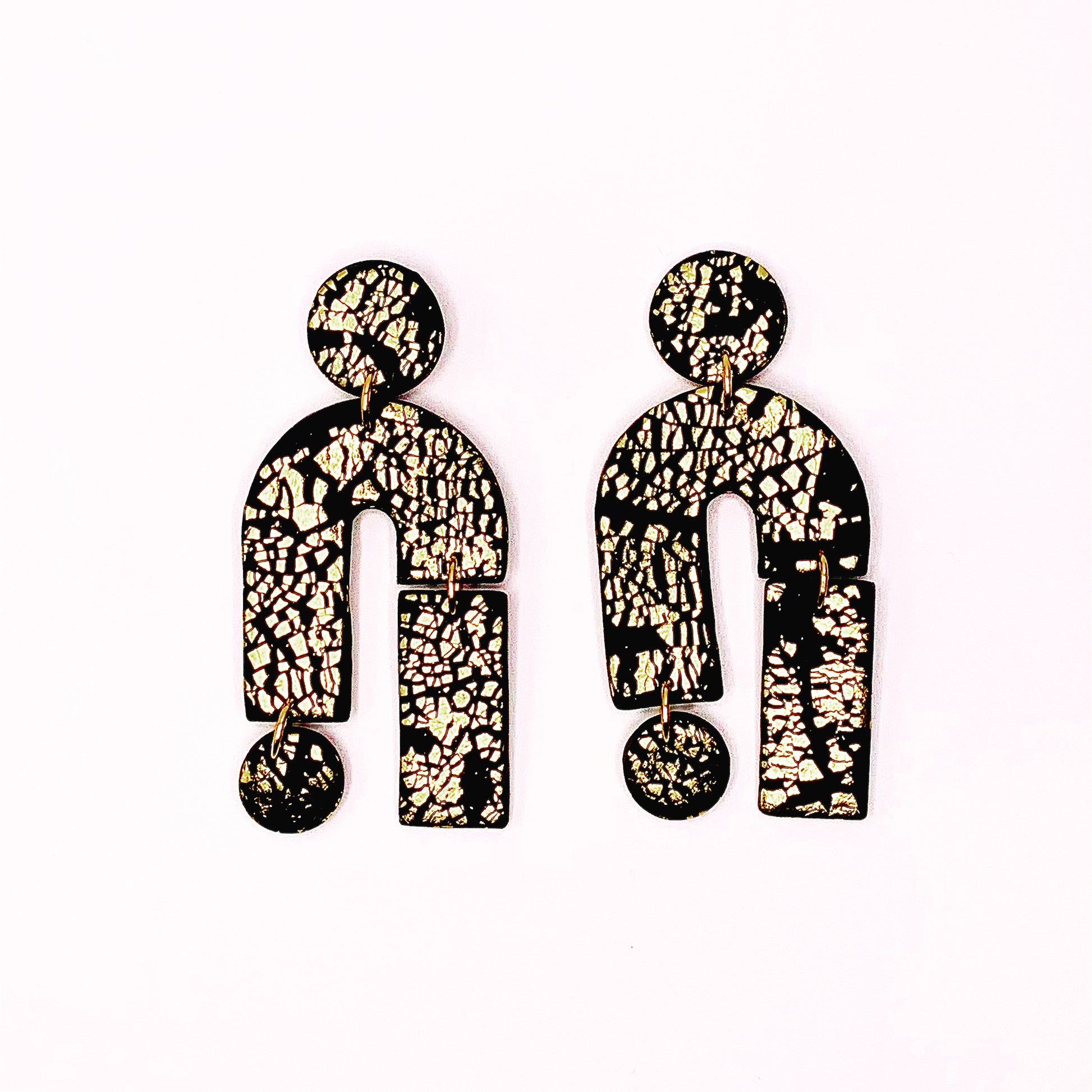 Black polymer shapes with gold leaf shimmer, perfect wardrobe staple!