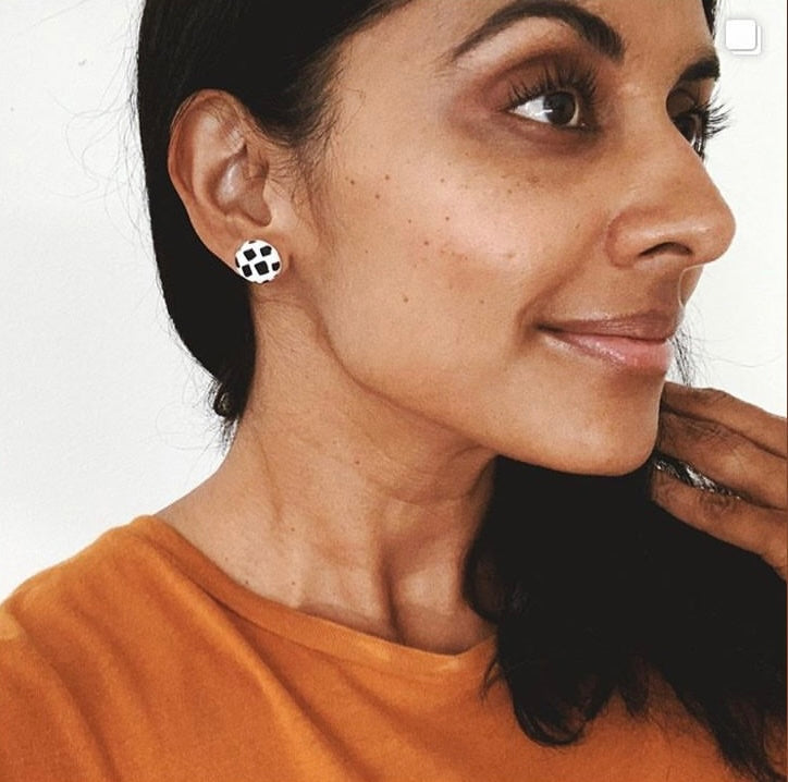Handmade polymer clay earrings stud duo.